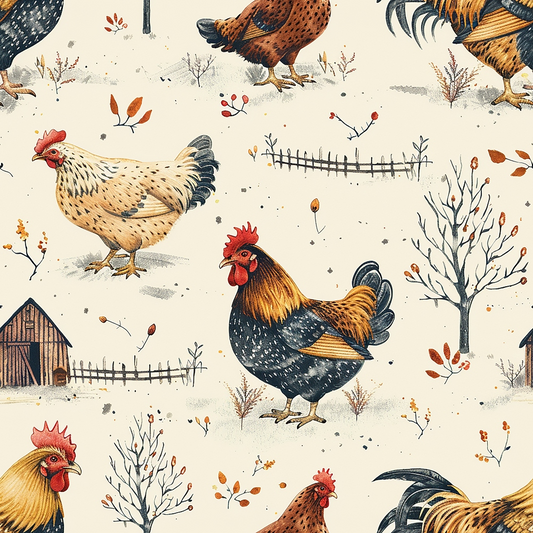 Farmhouse Chickens Pattern 3 Quilting Cotton Fabric