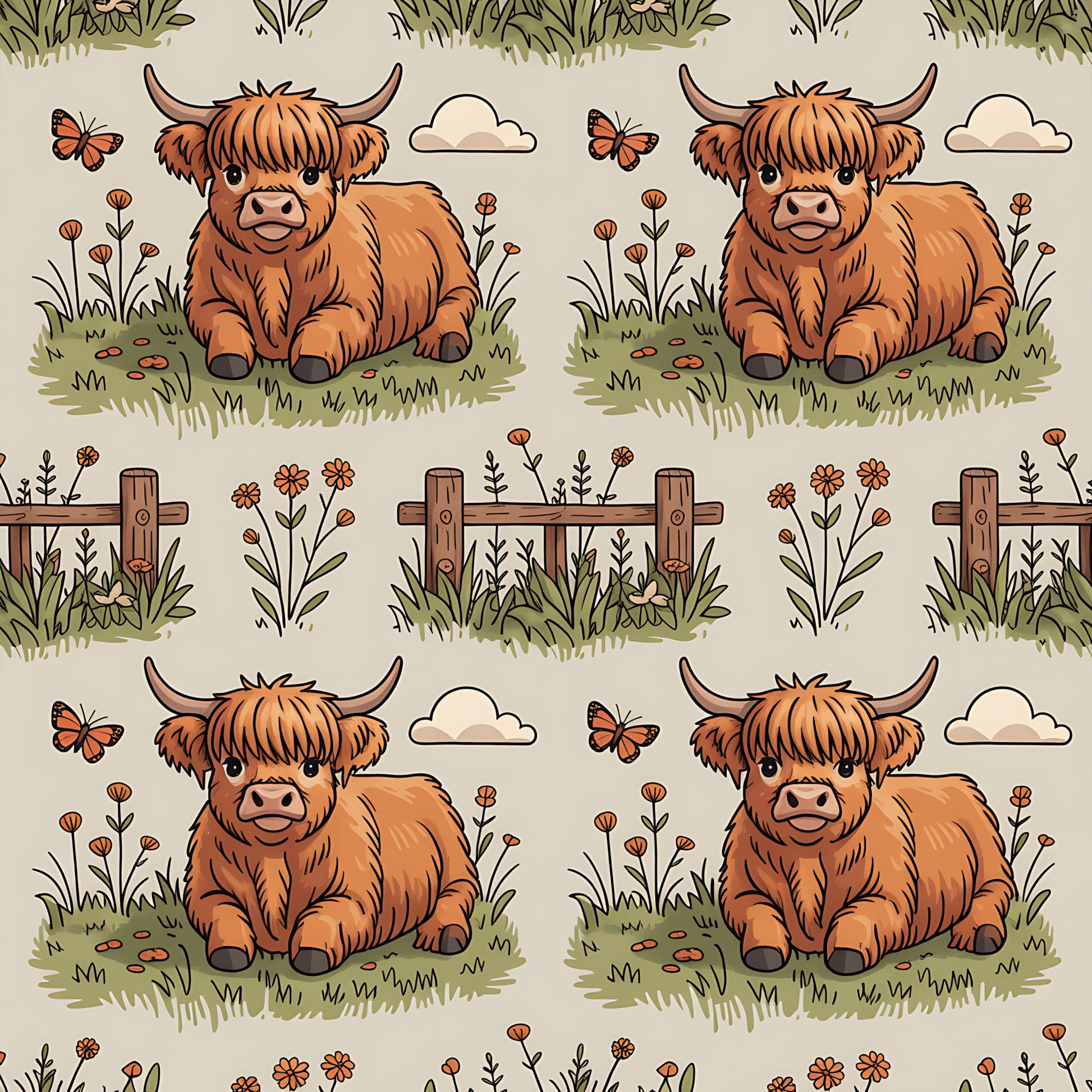 Cartoon Highland Cows Pattern 1 Quilting Cotton Fabric