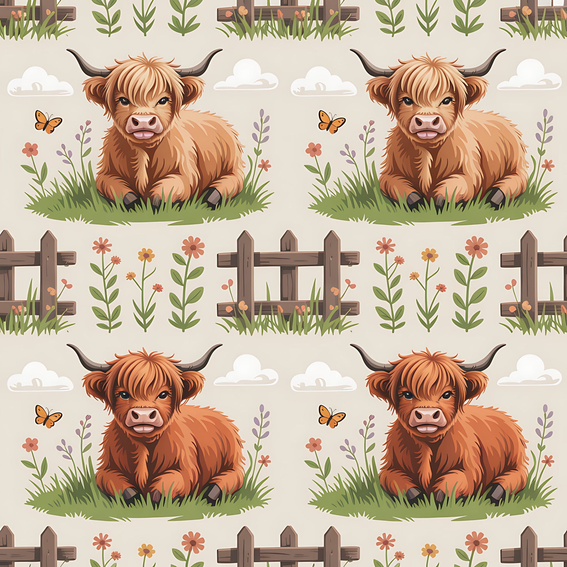 Cartoon Highland Cows Pattern 11 Quilting Cotton Fabric