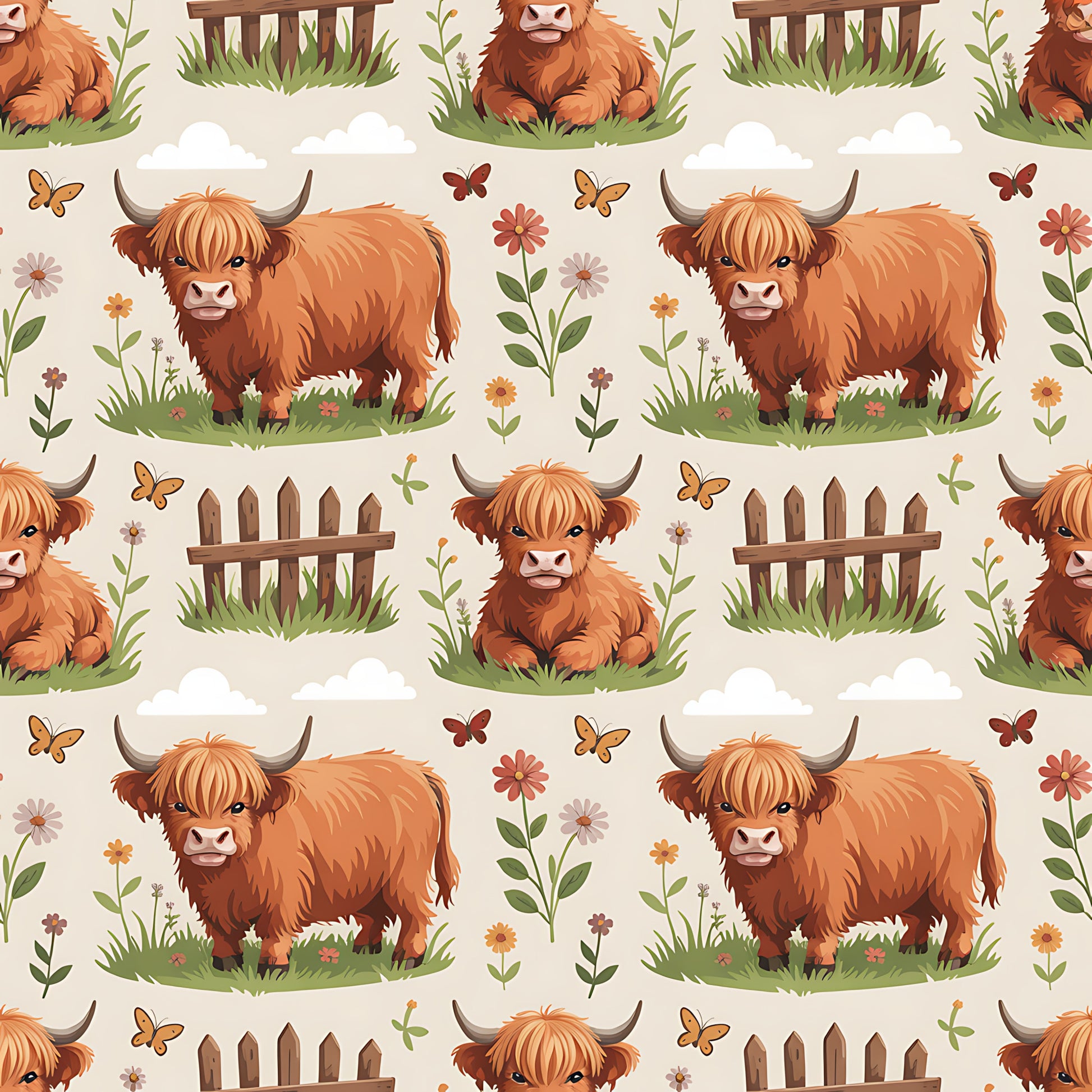 Cartoon Highland Cows Pattern 21 Quilting Cotton Fabric