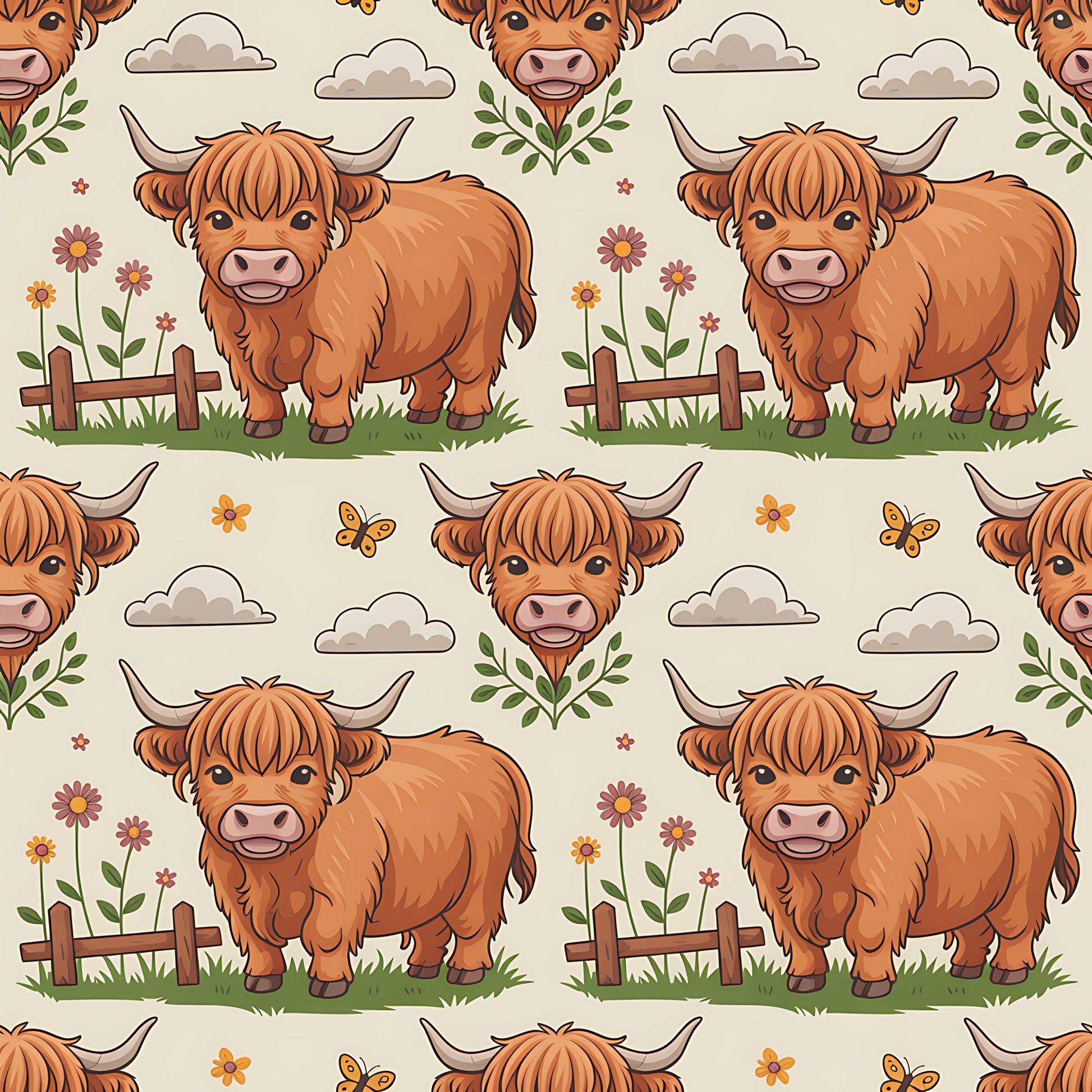 Cartoon Highland Cows Pattern 9 Quilting Cotton Fabric