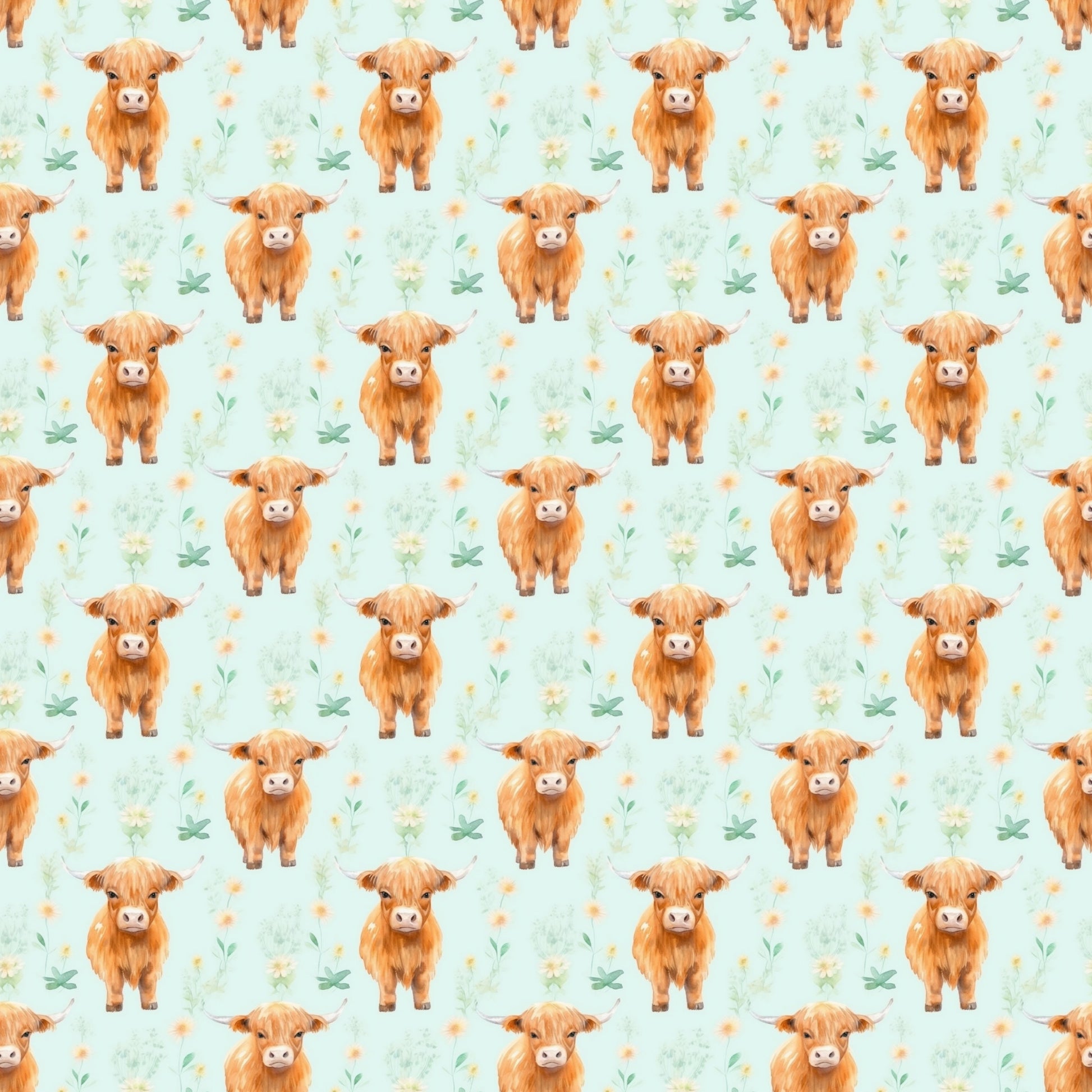 Funky Highland Cows Pattern 1 Quilting Cotton Fabric