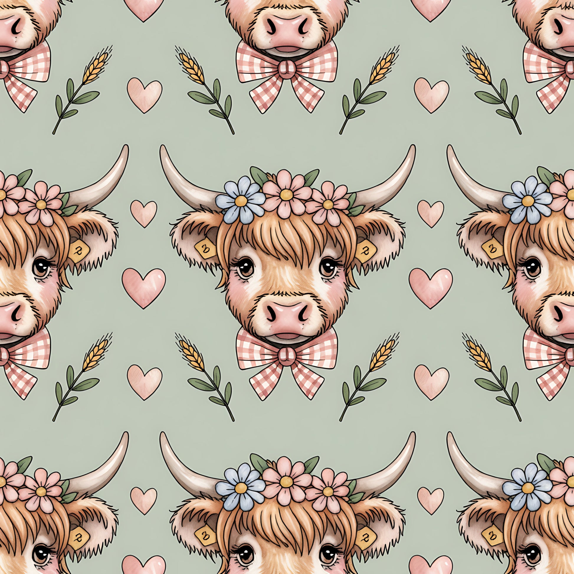 Highland Cow Heads Pattern 13 Quilting Cotton Fabric