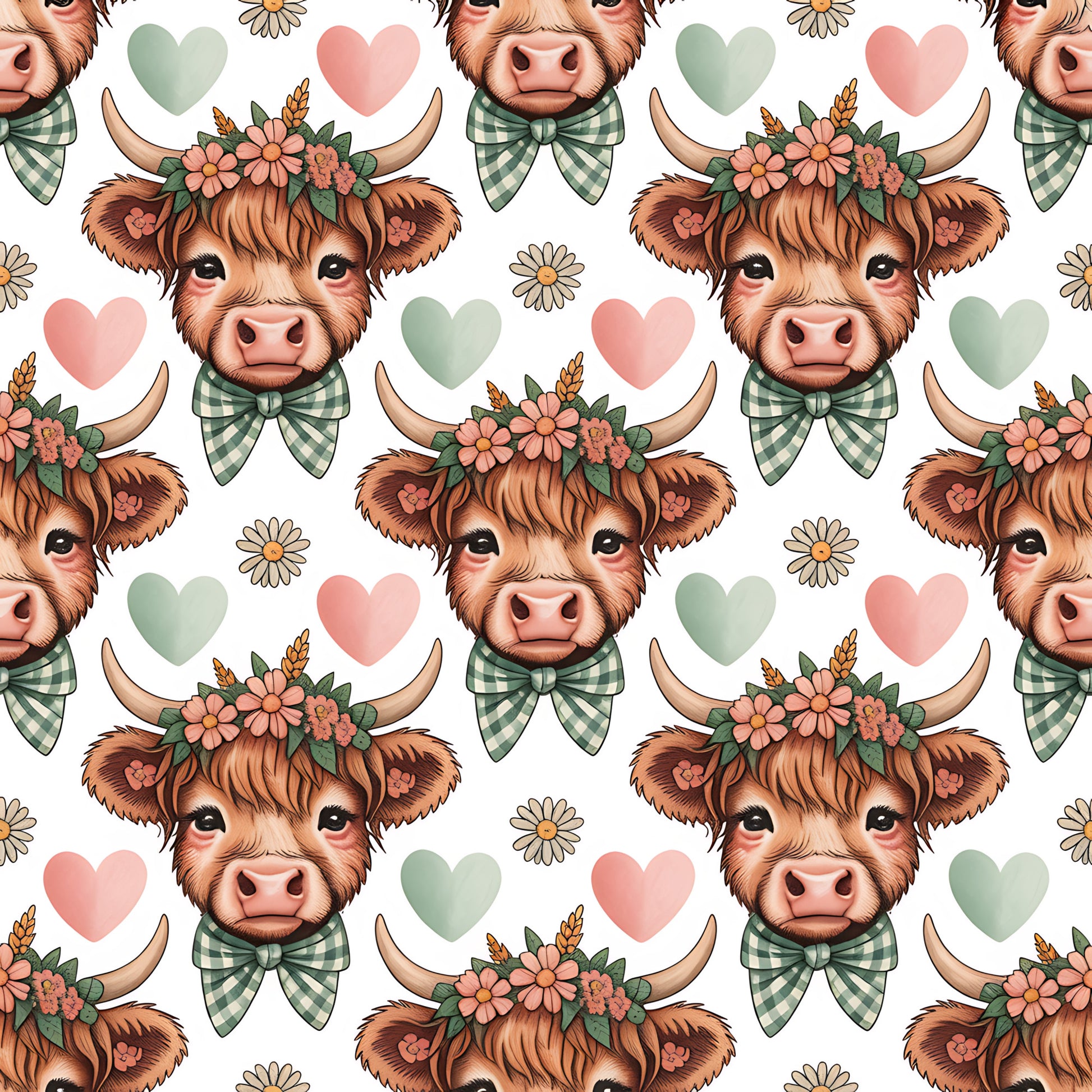 Highland Cow Heads Pattern 5 Quilting Cotton Fabric