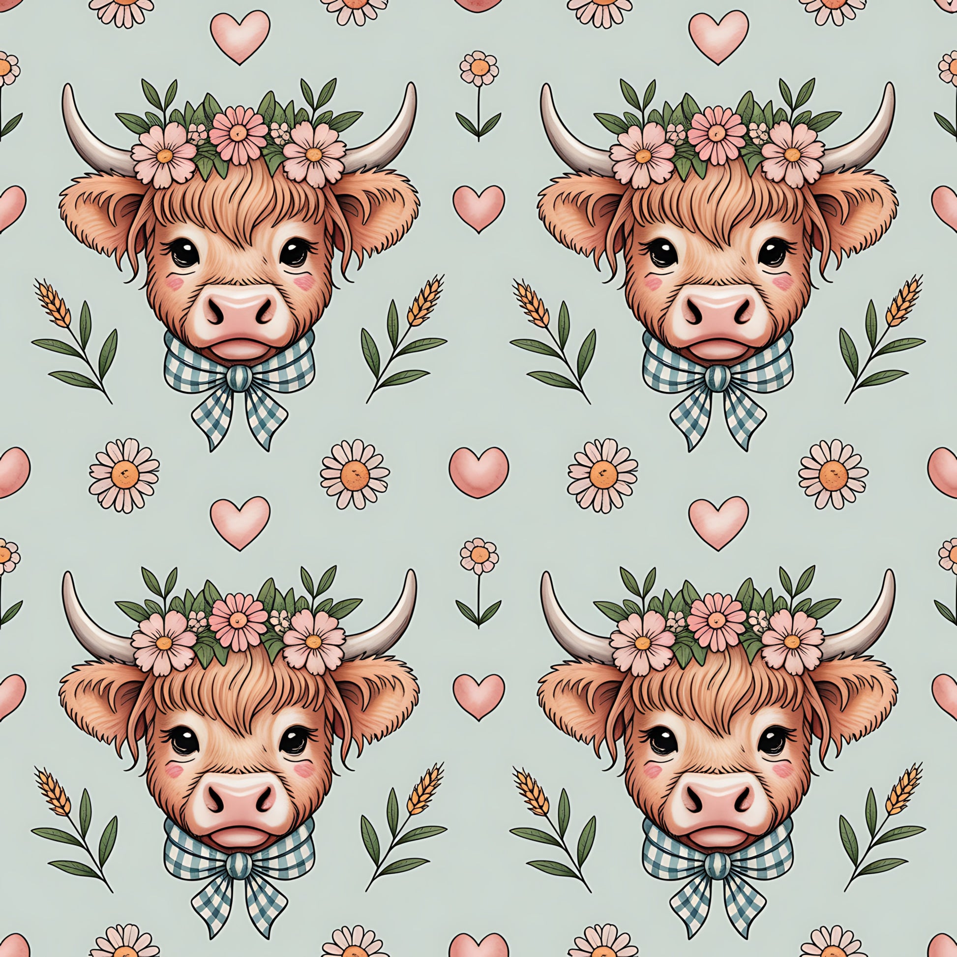 Highland Cow Heads Pattern 9 Quilting Cotton Fabric