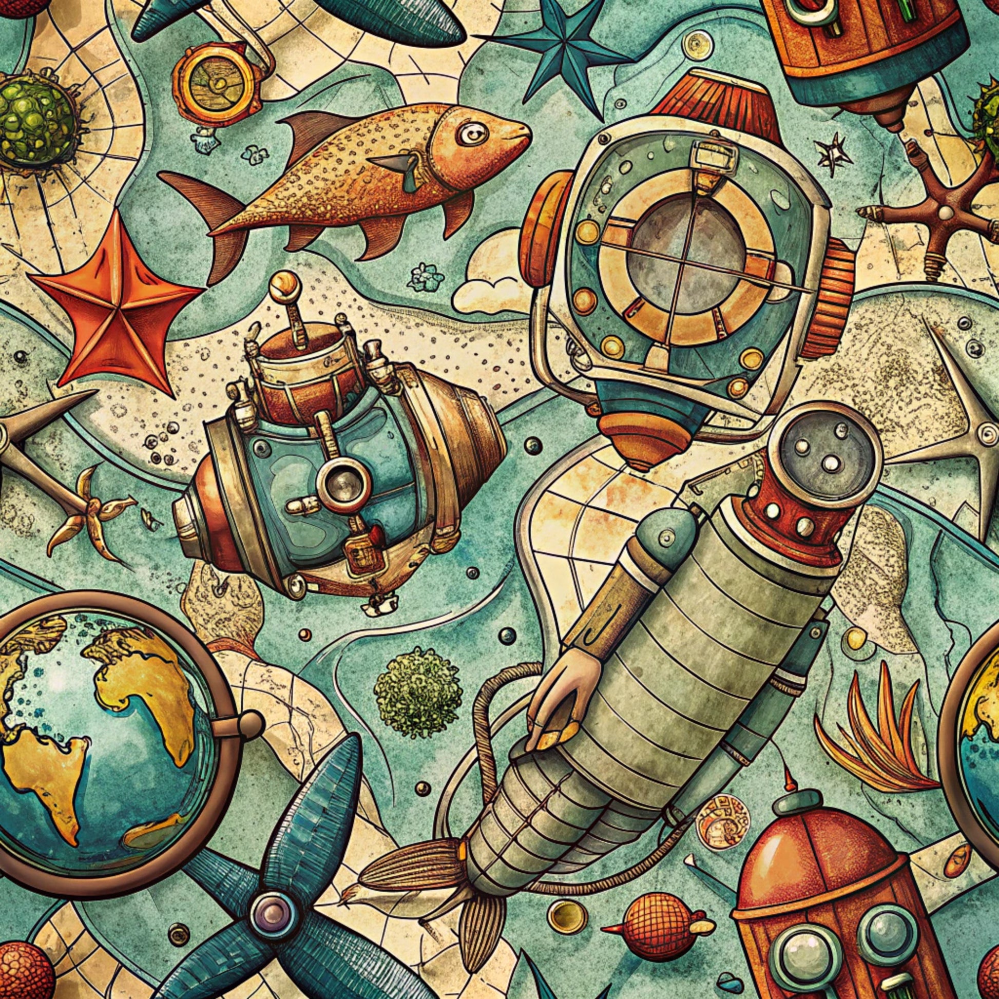 Magical Sea Pattern 14 Quilting Cotton Fabric