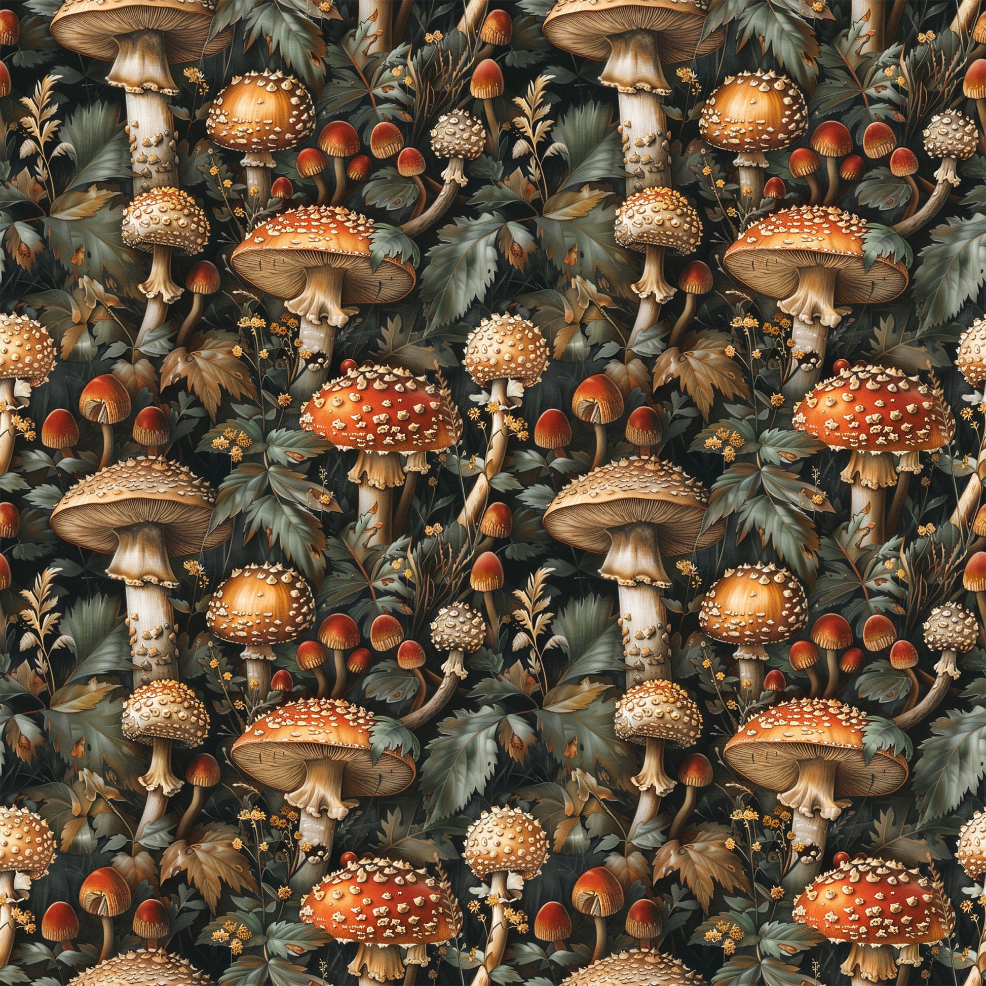 Retro Mushroom Botanical Pattern 1 Quilting Cotton Fabric