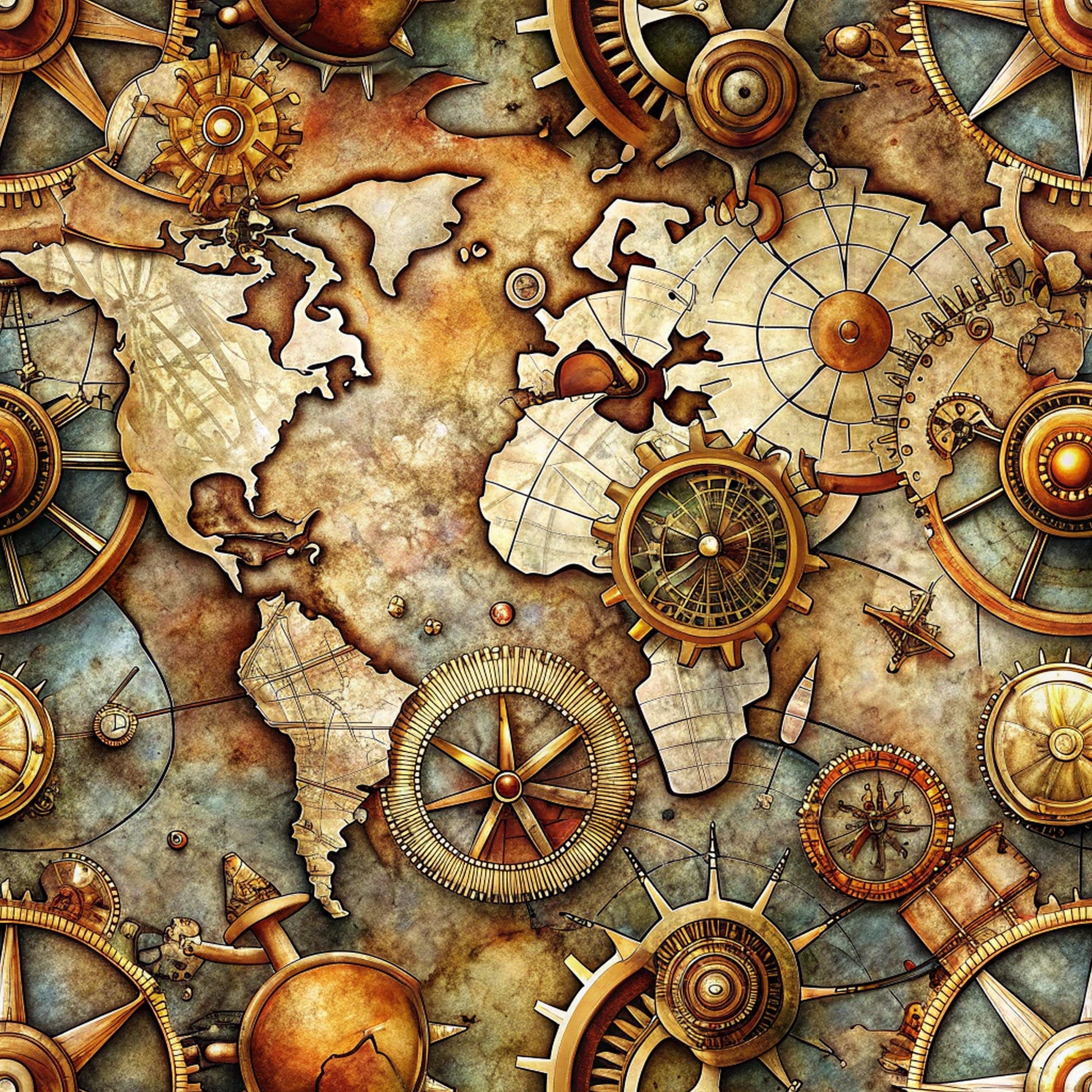 Steampunk Old Maps Pattern 10 Quilting Cotton Fabric